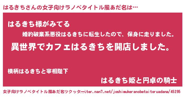 | 男性向けラノベタイトル風あだ名 | 『誰もが恐れるあのはるきちが、ぼくの専属メイドになるようです。』 |