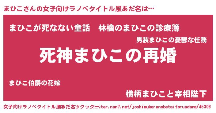| 男性向けラノベタイトル風あだ名 | 『ノーゲーム・ノーマヒコ』 |