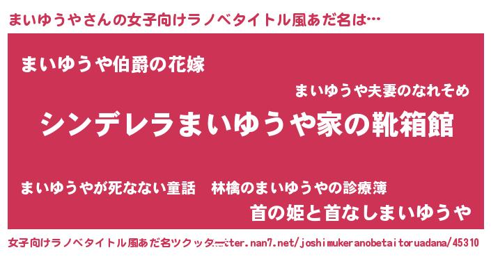 | 胡散臭い通販商品みたいなあだ名 | 『幸せが訪れる高級そうな壺…その名も「まいゆうや」』 |