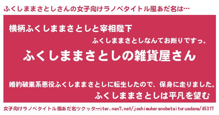 | 男性向けラノベタイトル風あだ名 | 『やはりふくしままさとしの青春ラブコメはまちがっている 』 |