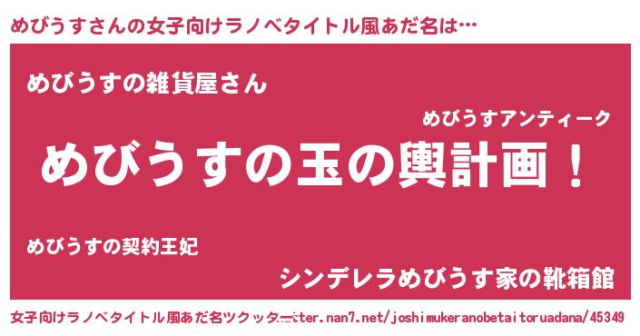 | 男性向けラノベタイトル風あだ名 | 『転生したらめびうすだった件』 |