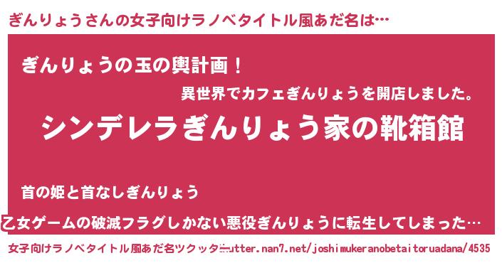 | 胡散臭い通販商品みたいなあだ名 | 『ハリウッド女優が絶賛した100年もののヴィンテージワイン…その名も「ぎんりょう」』 |