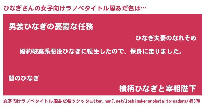 | 男性向けラノベタイトル風あだ名 | 『ヒナギスレイヤー』 |