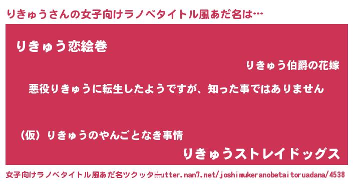 | 男性向けラノベタイトル風あだ名 | 『この素晴らしい世界にりきゅうを!』 |