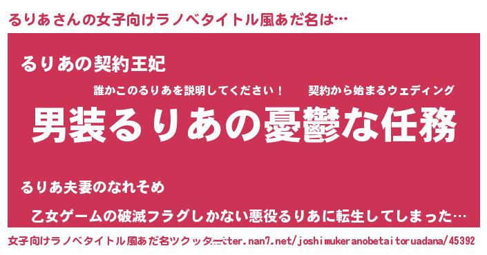 | ヒーロー風カッコイイあだ名 | 『ネオルリア』『仮面ルリダー』 |