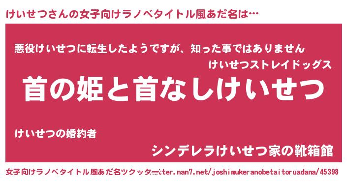 | 男性向けラノベタイトル風あだ名 | 『はたらくけいせつさま!』 |