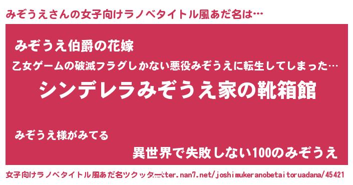| ヒーロー風カッコイイあだ名 | 『ウルトラみぞうえマン』『ネオミゾウエ』 |