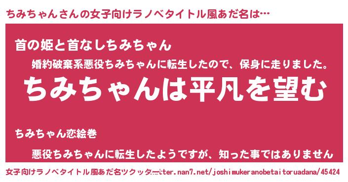 | ヘコむあだ名 | 『ちみっ子』『ちみもー』『豆乳』 |
