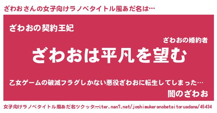 | 男性向けラノベタイトル風あだ名 | 『ダンジョンにざわおを求めるのは間違っているだろうか』 |