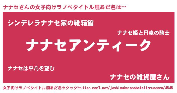 | 男性向けラノベタイトル風あだ名 | 『魔法科高校のナナセ』『緋弾のナナセ』 |