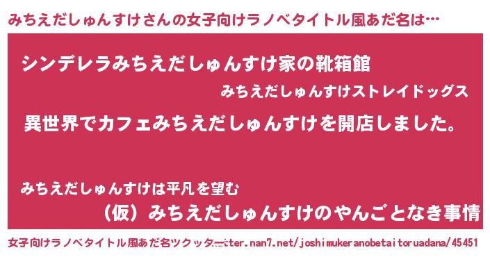 | 男性向けラノベタイトル風あだ名 | 『誰もが恐れるあのみちえだしゅんすけが、ぼくの専属メイドになるようです。』 |