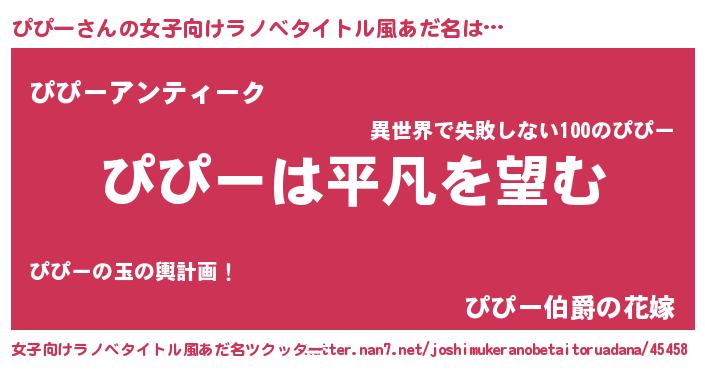 | 男性向けラノベタイトル風あだ名 | 『ダンジョンにぴぴーを求めるのは間違っているだろうか』 |