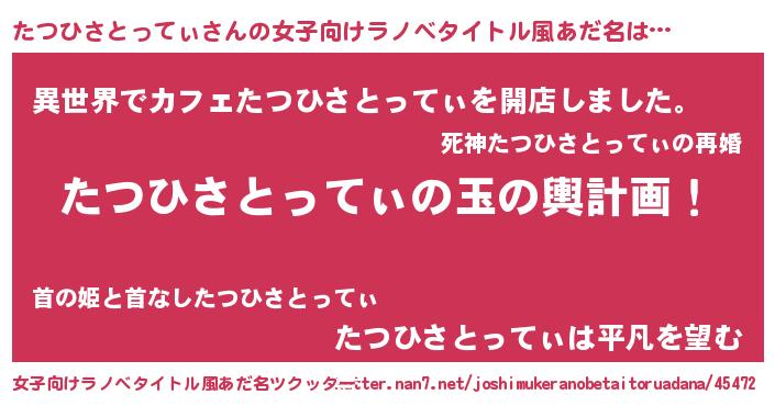 | 胡散臭い通販商品みたいなあだ名 | 『前代未聞の健康食品…その名も「たつひさとってぃ」』 |
