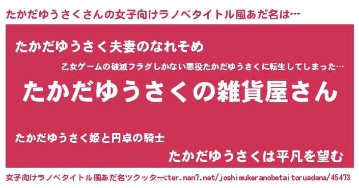 | ファンタジー風あだ名 | 『エターナルタカダユウサクー』 |