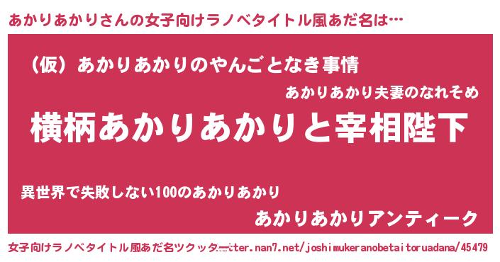 | 胡散臭い通販商品みたいなあだ名 | 『億万長者になれるブレスレット…その名も「あかりあかり」』 |
