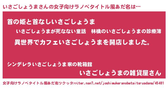| 胡散臭い通販商品みたいなあだ名 | 『前代未聞の健康食品…その名も「いさごしょうま」』 |