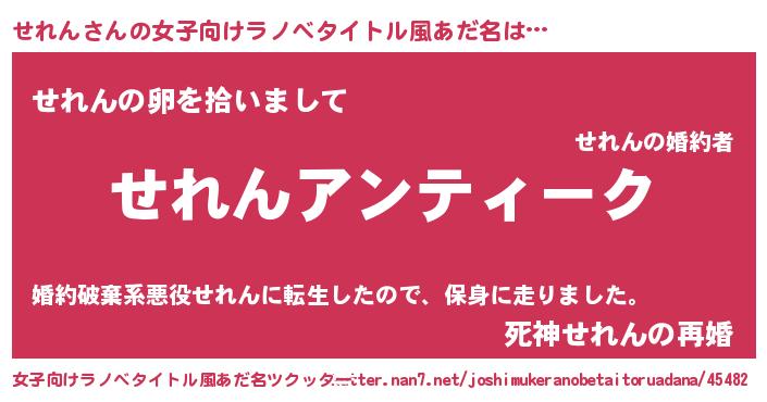 | 意味不明あだ名 | 『自称せれん』『とにかく怪しいせれん』 |