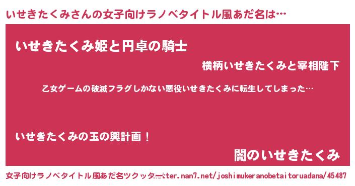 | ヘコむあだ名 | 『いせにゅー』『いせきたくみ(笑)』 |