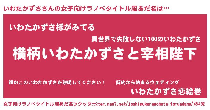 | 意味不明あだ名 | 『とにかく怪しいいわたかずさ』 |