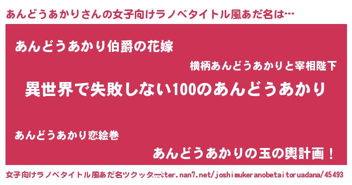 | 男性向けラノベタイトル風あだ名 | 『あんどうあかりという概念が存在しない退屈な世界 』 |