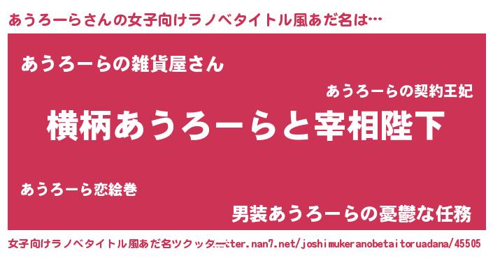 | 男性向けラノベタイトル風あだ名 | 『あうろーらに滅ぼされるだけの簡単なお仕事です』 |