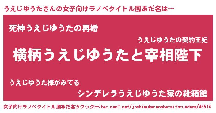 | 男性向けラノベタイトル風あだ名 | 『うえじゆうたに滅ぼされるだけの簡単なお仕事です』 |