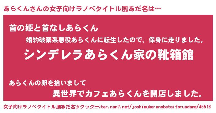 | 胡散臭い通販商品みたいなあだ名 | 『絶対に幸福をもたらす水素水…その名も「あらくん」』 |