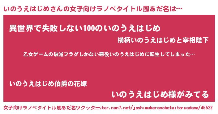 | 意味不明あだ名 | 『住所不定無職いのうえはじめ(1歳)』 |