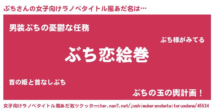 | ヒーロー風カッコイイあだ名 | 『友情の使者ぶち』『幻影騎士ブチ』 |