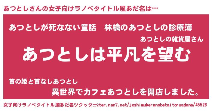 | 胡散臭い通販商品みたいなあだ名 | 『信頼と実績のネックレス…その名も「あつとし」』 |