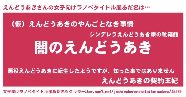 | 胡散臭い通販商品みたいなあだ名 | 『芸能人もオススメする高麗人参…その名も「えんどうあき」』 |