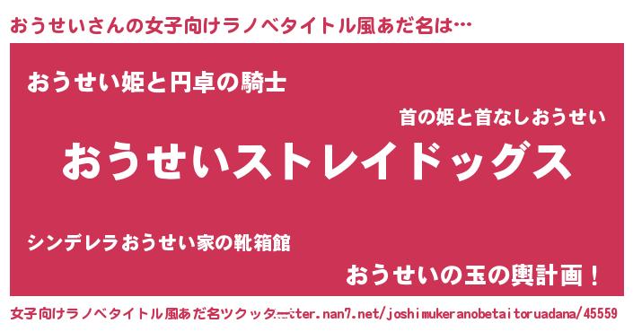 | 男性向けラノベタイトル風あだ名 | 『Re:おうせいから始める異世界生活』 |
