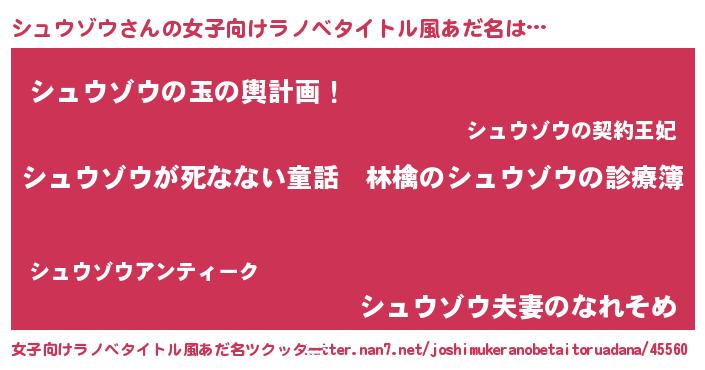 | ヘコむあだ名 | 『シュウゾウ(苦笑)』『シュっちょ』 |