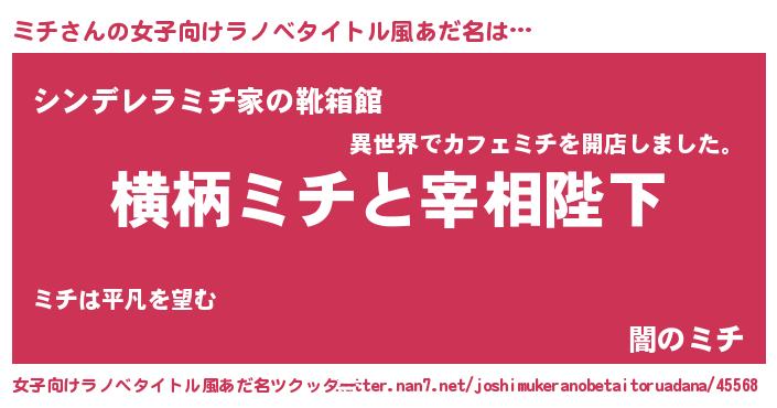 | 男性向けラノベタイトル風あだ名 | 『ミチに滅ぼされるだけの簡単なお仕事です』 |