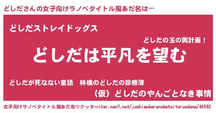 | 胡散臭い通販商品みたいなあだ名 | 『信頼と実績のペンダント…その名も「どしだ」』 |