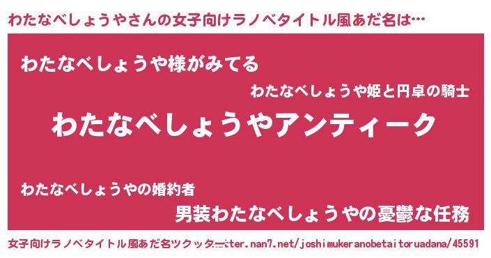 | 男性向けラノベタイトル風あだ名 | 『魔法科高校のわたなべしょうや』 |