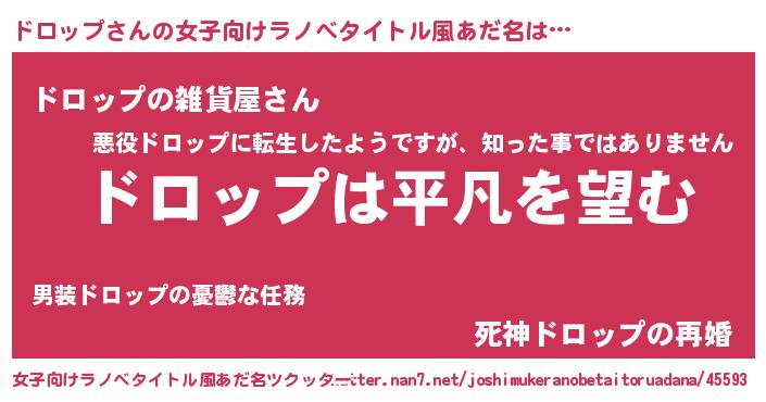 | 胡散臭い通販商品みたいなあだ名 | 『信頼と実績のネックレス…その名も「ドロップ」』 |