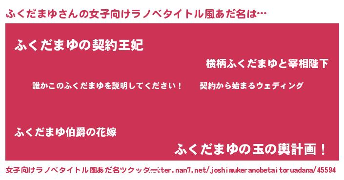 | 肩書あだ名 | 『ふくだまゆ社長令嬢』『ふくだまゆ担任』 |