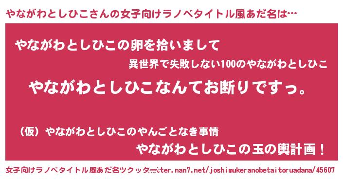 | 肩書あだ名 | 『やながわとしひこ閣下』 |