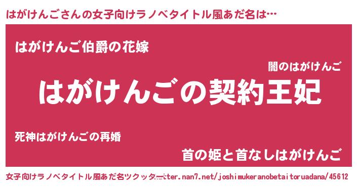 | 男性向けラノベタイトル風あだ名 | 『はがけんごという概念が存在しない退屈な世界 』 |