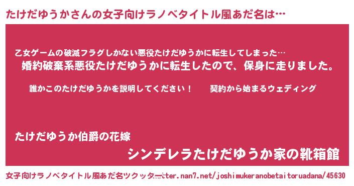 | 男性向けラノベタイトル風あだ名 | 『タケダユウカアートオンライン』 |