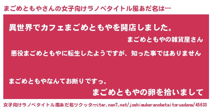 | 男性向けラノベタイトル風あだ名 | 『この素晴らしい世界にまごめともやを!』 |