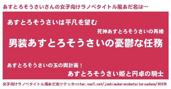 | 伝説のあだ名 | 『解き放たれた遊び人あすとろそうさい』 |