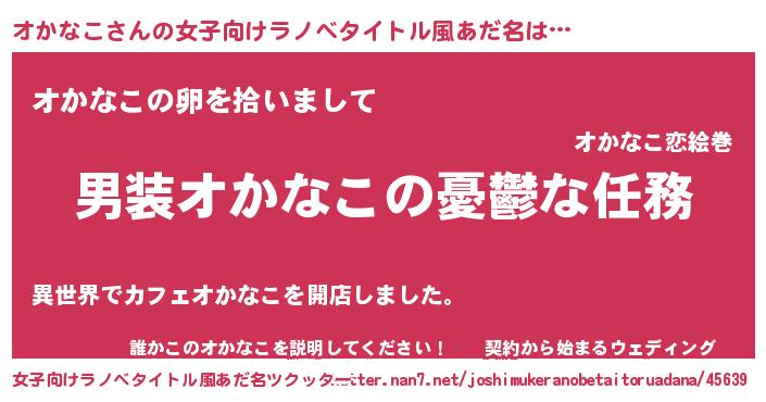 | 男性向けラノベタイトル風あだ名 | 『冴えないオかなこの育てかた』 |