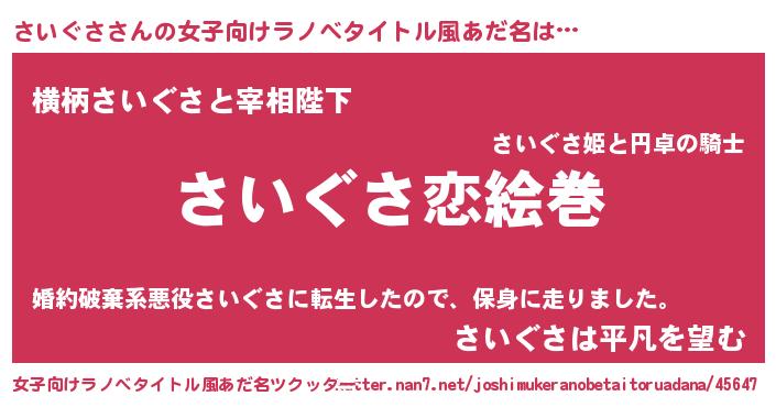| ヒーロー風カッコイイあだ名 | 『愛の使者さいぐさ』『暗黒騎士サイ』 |