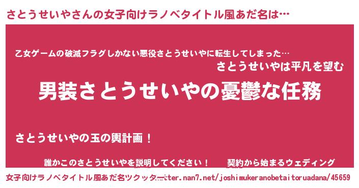 | 男性向けラノベタイトル風あだ名 | 『うちのさとうせいやが世界を掌握している!』 |