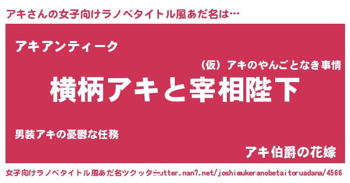 | 男性向けラノベタイトル風あだ名 | 『アキに滅ぼされるだけの簡単なお仕事です』 |