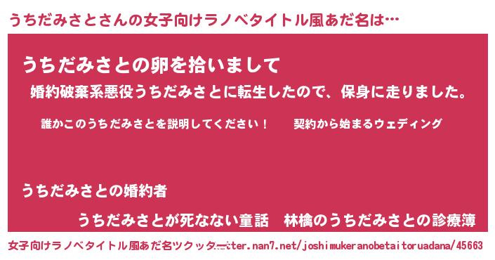 | 胡散臭い通販商品みたいなあだ名 | 『億万長者になれるブレスレット…その名も「うちだみさと」』 |