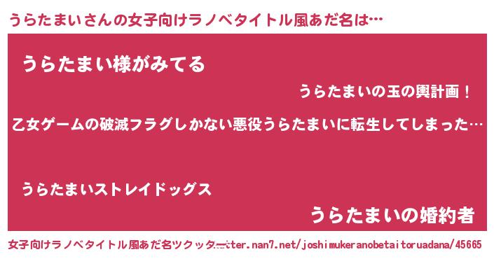 | 男性向けラノベタイトル風あだ名 | 『魔弾の王とうらたまい』 |