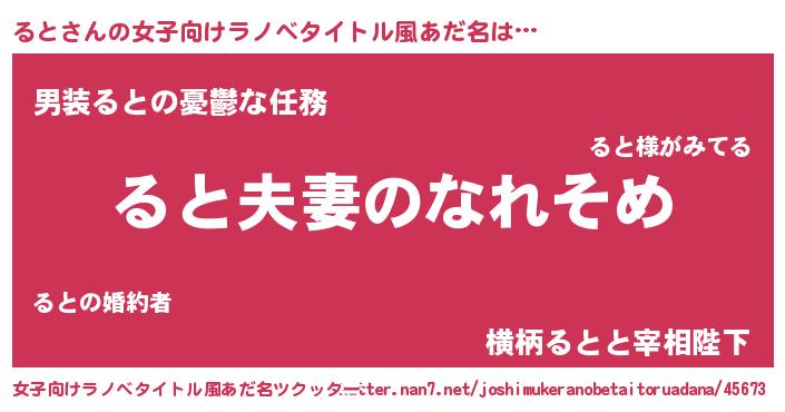 | 男性向けラノベタイトル風あだ名 | 『おまえをオタクにしてやるから、俺をるとにしてくれ! 』 |